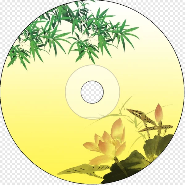 Enhance your disc collection with this stunning free PNG image! Download an elegant CD/DVD label design featuring vibrant green bamboo leaves gracefully framing the top, complemented by delicate orange lotus flowers and pads rendered in a traditional Asian art style at the bottom. The serene imagery rests on a beautiful yellow gradient background, perfect for creating a peaceful and sophisticated look for your custom discs. Ideal for music, videos, or data, this nature-inspired template offers a tranquil aesthetic. Get your free high-quality download today and give your CDs and DVDs a unique, artistic touch!