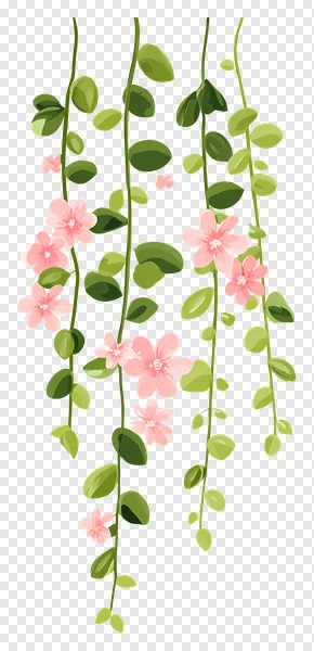 Download this exquisite free PNG featuring delicate pink flowers gracefully blooming amidst lush green hanging vines. Perfect for adding a touch of natural elegance to your designs, this transparent background clip art is ideal for wedding invitations, digital scrapbooking, greeting cards, website decoration, and spring or summer-themed projects. Enhance your creative works with this high-quality floral garland illustration, available for instant download and ready to infuse beauty into your next project.
