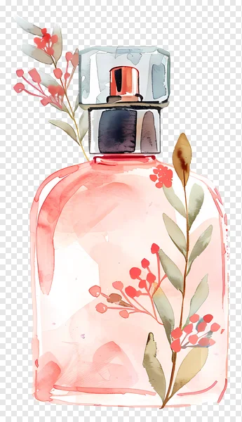 Download this beautiful free PNG of an elegant watercolor perfume bottle, gracefully adorned with delicate pink berries and green-gold leaves. Perfect for adding a touch of sophisticated artistry to your designs. This high-quality, transparent image features a soft pink fragrance bottle with a unique hand-painted aesthetic, ideal for beauty blogs, wedding invitations, digital scrapbooking, fashion graphics, or any project needing a chic, feminine touch. Get this aesthetic illustration for your creative ventures now!