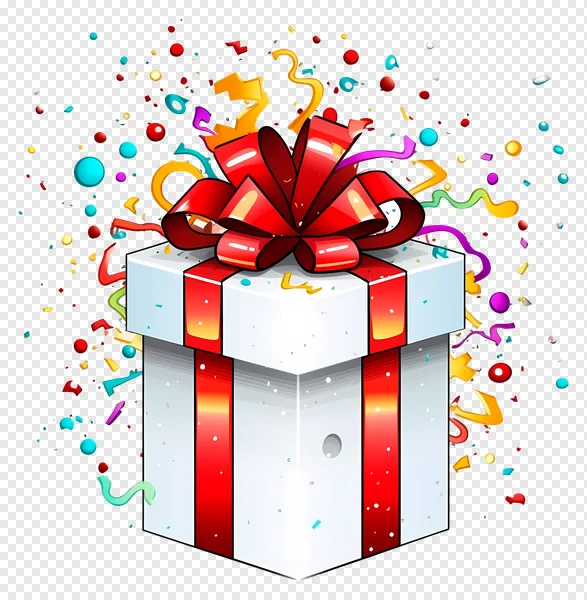 Tags: birthday celebration colorful confetti event festive free download gift box graphic holidays illustration joy party present red bow streamers surprise transparent PNG vibrant white box