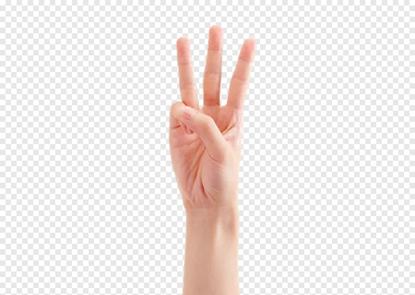 Looking for a clear, high-quality PNG of a common hand gesture? Download this free transparent image featuring a human hand with the index, middle, and ring fingers extended, representing the number three. Perfect for educational content, graphic design projects, presentations, or illustrating concepts of quantity, order (like 'third'), or even a 'W' sign. This isolated hand on a transparent background offers easy integration into any digital design. Get your free high-resolution hand gesture PNG today!