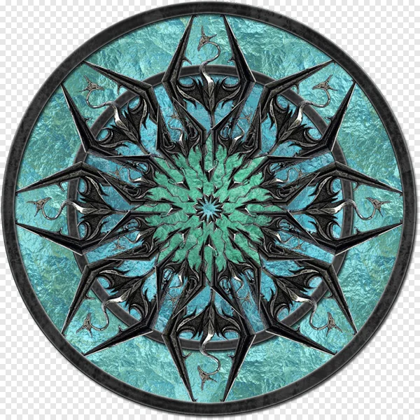 Download this stunning, free PNG of an intricate dark fantasy mandala star, perfect for your creative projects. Featuring sharp, metallic, gothic-inspired spikes and elegant curves set against a vibrant turquoise-blue textured background, reminiscent of mystical stained glass. This unique emblem showcases detailed dragon or gargoyle-like motifs within its complex circular design. Ideal for graphic designers, game developers, or anyone needing a high-quality, transparent asset for fantasy themes, emblems, logos, or striking decorative elements. Get this captivating, ornate symbol now for your desktop, website, or art!