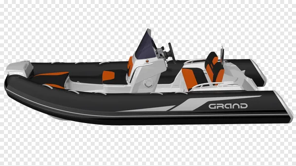 Download this high-quality, free PNG image of a sleek, modern inflatable boat! Featuring a striking orange and black color scheme with the 'Grand' logo, this image is perfect for marine-themed projects, website graphics, presentations, or any design needing a touch of nautical flair. Transparent background for easy integration. Get your free download now!