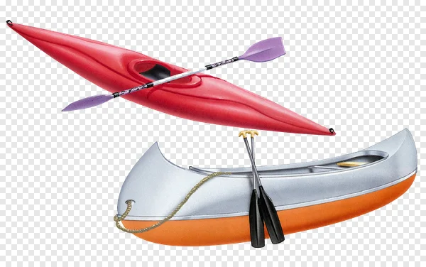Paddle into your next design project with this captivating free PNG image featuring a vibrant red kayak with a stylish purple paddle and a classic two-toned silver and orange canoe, complete with two black paddles and a decorative rope. This high-quality, transparent background clip art is perfect for anyone looking to add a touch of outdoor recreation and water sports to their websites, presentations, educational materials, or summer-themed promotions. Ideal for illustrating river trips, lake adventures, or general leisure activities, this versatile graphic is available for instant download to enhance your creative works. Get this unique illustration for free and bring your designs to life!