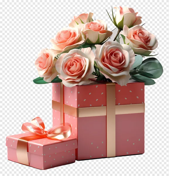 Download this enchanting transparent PNG of a beautiful peach-pink rose bouquet paired with charming polka dot gift boxes for free. Perfect for adding a touch of romance and elegance to your digital projects, greeting cards, invitations, social media posts, or presentations. Ideal for occasions like Valentine's Day, birthdays, weddings, anniversaries, or Mother's Day. The high-quality isolated image ensures seamless integration into any background. Get your free download now and make your designs blossom!