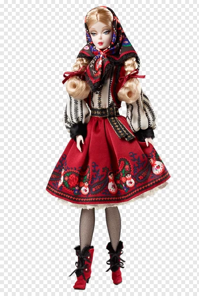 Download this stunning free PNG of a blonde Barbie-style doll adorned in a vibrant traditional Russian folk costume. Featuring a detailed red embroidered skirt with charming matryoshka doll motifs, a white puffy-sleeved blouse, an elegant patterned headscarf, fishnet stockings, and stylish red fur-trimmed boots. Perfect for cultural projects, graphic design, educational materials, or adding a touch of Slavic charm to your creations. This high-quality image comes with a transparent background, ready for instant use. Get your free download now and bring unique traditional flair to your next design!