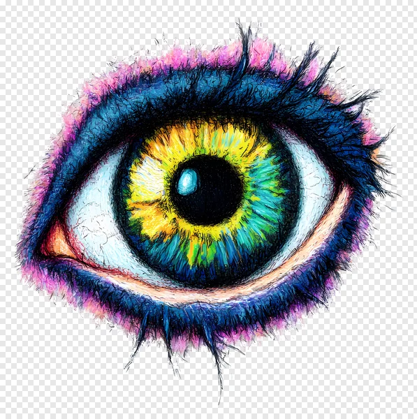 Unleash your creativity with this stunning free PNG of a vibrant abstract eye. Featuring an explosion of psychedelic colors like electric yellow, bright green, and deep blues in the iris, surrounded by expressive paint splatters and artistic strokes on the eyelashes. This high-resolution digital art piece on a transparent background is perfect for graphic design projects, website backgrounds, artistic compositions, or adding a unique, energetic touch to your digital creations. Download now and infuse your designs with this striking and colorful visual!