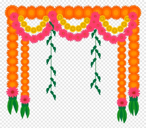 Adorn your digital projects with this vibrant, high-quality, free PNG of a traditional Indian flower garland. Featuring beautiful orange and yellow marigolds, green leaves, and charming hanging floral accents, this transparent image is perfect for adding a touch of festive elegance. Ideal for Diwali, weddings, pujas, cultural events, greeting cards, invitations, website banners, or any design needing a cheerful, ethnic floral border. Download this stunning decorative element instantly and enhance your creative endeavors!