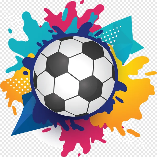 Download this vibrant, high-quality PNG of a soccer ball bursting with dynamic energy! Featuring a classic black and white football centered against a backdrop of lively paint splashes in shades of teal, blue, yellow, and magenta, complemented by modern geometric triangles and dot patterns. Perfect for sports-themed projects, web design, event promotions, graphic art, or digital marketing. This free image comes with a transparent background, making it easy to integrate into any creative design. Get your free soccer ball art today!