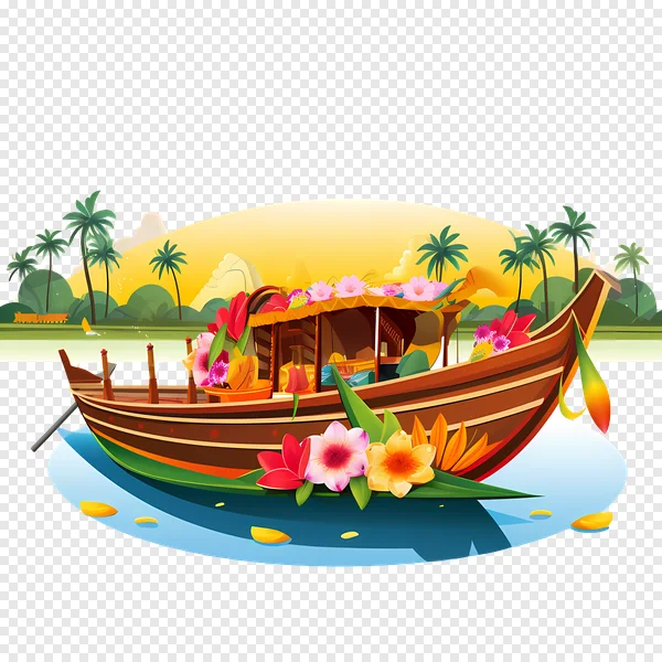 Download our high-quality, free PNG image featuring a stunning traditional tropical boat, beautifully adorned with colorful flowers. This vibrant illustration captures the essence of an exotic getaway, showcasing a classic longtail boat set against a picturesque backdrop of lush palm trees and serene mountains under a warm, inviting sky. Perfect for enhancing your design projects, presentations, travel blogs, or social media content. With its transparent background, this PNG is ideal for effortless integration into websites, digital art, event invitations, and marketing materials, bringing a touch of Southeast Asian charm and vacation vibes to any creative endeavor. Get this captivating image for your personal and commercial use today!