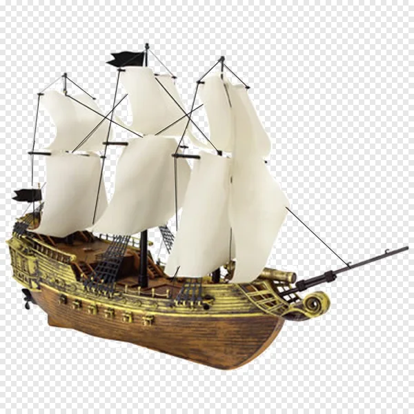 Embark on a design adventure with our free high-quality PNG of a vintage pirate ship model! This intricately detailed sailing galleon features classic white sails, a rich wooden hull with golden accents, cannons, and full rigging, all on a transparent background. Perfect for graphic designers, educators, or anyone needing a touch of maritime history. Download this antique ship image for free to enhance your posters, websites, game assets, or creative projects. Its historical charm and crisp details make it ideal for various digital and print applications. Get your free transparent pirate ship PNG now!