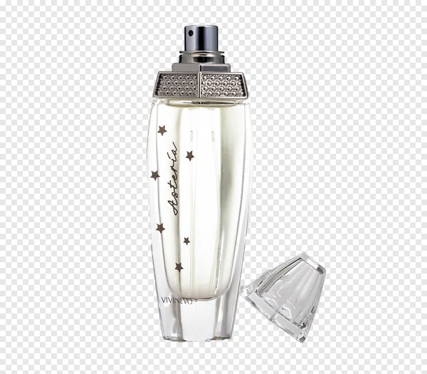 Download this exquisite Vivinevo Asteria perfume bottle PNG for free, perfect for enhancing your digital projects. This high-resolution image features a clear glass bottle adorned with charming star motifs and the elegant 'Asteria' script, topped with a dazzling crystal-studded silver sprayer. The intricately designed cap rests detached, showcasing its faceted glass detail. Ideal for beauty blogs, e-commerce product listings, social media graphics, or any creative design requiring a touch of luxury. Get this transparent background, cutout image of a premium fragrance to add sophistication to your visuals effortlessly.
