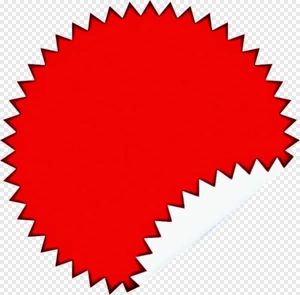 Download this eye-catching red starburst sticker PNG image for free! This versatile blank label features a distinctive jagged edge and a subtle page curl effect, making it perfect for dynamic announcements. Use it to highlight sales, discounts, special offers, new products, or any important promotion. With its transparent background, you can easily customize it with your own text, logos, or icons for web design, e-commerce stores, social media campaigns, or print marketing. Get this high-quality graphic asset to instantly elevate your marketing materials and capture audience attention.