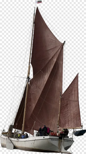 Download this stunning free PNG of the classic sailing boat "Reminder Harwich," an iconic vessel featuring rich brown sails and an elegant white hull. This transparent background image captures the majestic sailboat under full sail with passengers visible on deck, making it perfect for maritime themes, travel brochures, website design, or any creative project. Its authentic gaff-rigged appearance evokes a sense of nautical heritage and coastal adventures. Enhance your designs with this high-quality, versatile sailboat PNG available for instant free download!
