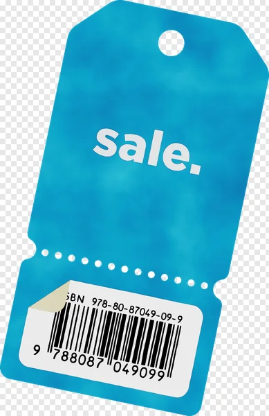 Download this free sale tag PNG image featuring a vibrant blue price tag with the word 'sale' and a barcode. Perfect for adding a promotional element to your designs, website, or marketing materials. Use it to highlight discounts, special offers, or clearance events. High-quality, transparent background for easy integration. Get your free download now and boost your sales visuals!