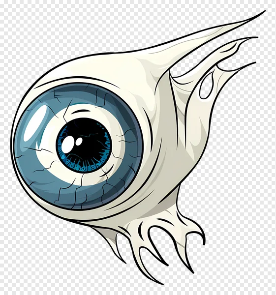 Unleash your creativity with this striking free PNG of a spooky cartoon eyeball! Featuring a vibrant blue iris, a dark pupil, and a grotesquely cracked sclera, this eye is not for the faint of heart. Its unique design includes sharp, monster-like protrusions, giving it an alien or horror aesthetic perfect for Halloween projects, fantasy game assets, creature design, or any graphic work requiring a touch of the macabre. This high-quality vector illustration comes with a transparent background, making it easy to integrate into your designs. Download this chilling eyeball PNG today and add a captivating, eerie element to your posters, web graphics, digital art, and more – completely free!