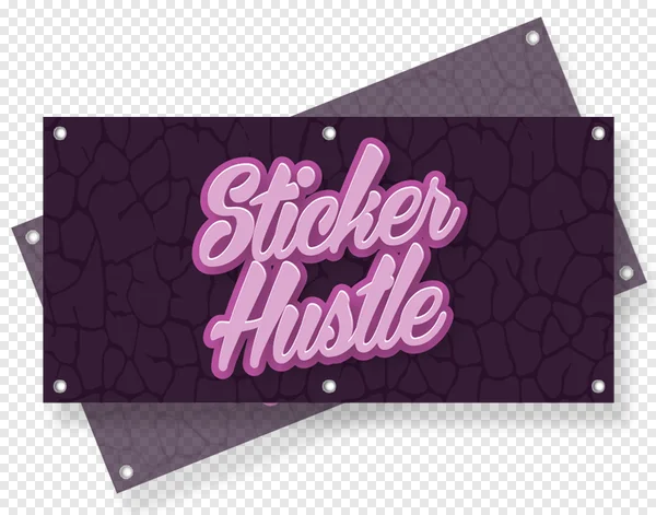 Download this eye-catching "Sticker Hustle" PNG image for free! This vibrant graphic features the words "Sticker Hustle" in a stylish, bubbly pink script font with a cool 3D shadow effect, set against a rich, textured dark purple background. The banner-like design is creatively fastened with six metallic rivets, giving it a sturdy, real-world feel. Perfect for entrepreneurs, small business owners, crafters, or anyone involved in the sticker business looking for a catchy logo, branding element, or social media graphic. Use this high-quality, transparent PNG to enhance your website, print materials, digital projects, or personal branding. Get your instant download now and elevate your creative endeavors!