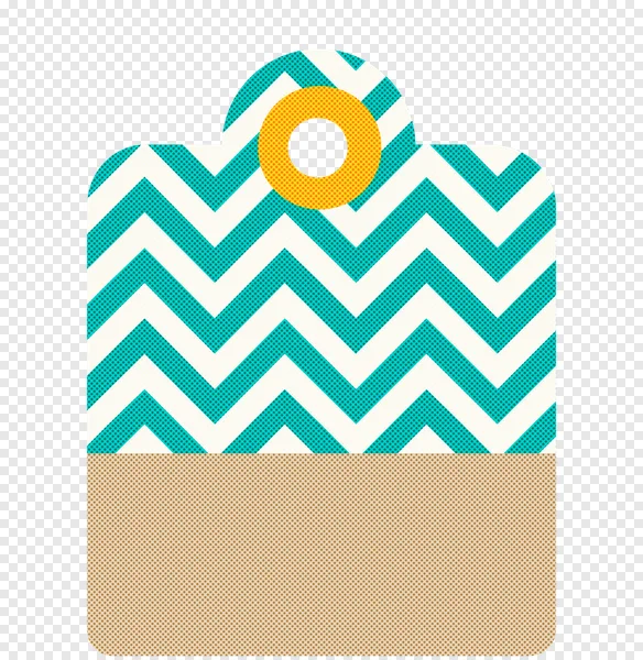 Elevate your creative projects with this charming free PNG gift tag, perfect for adding a touch of style and personality. It features a lively teal and cream chevron pattern on the upper half, perfectly complemented by a rustic light brown dotted texture on the bottom. Designed with smoothly rounded corners and a prominent yellow-ringed hole, this versatile label is ideal for digital scrapbooking, handmade gifts, party favors, product branding, or any creative design that needs a stylish accent. Its transparent background ensures seamless integration into your work. Download this high-quality, eye-catching graphic for free and start personalizing your crafts and designs today!