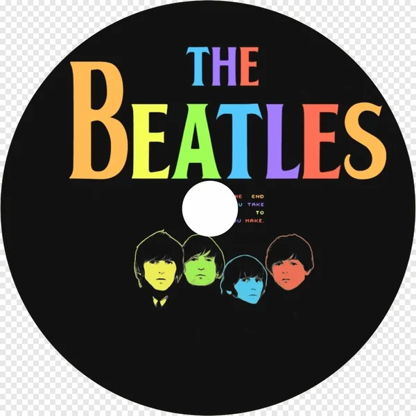Dive into music history with this free, high-quality PNG of The Beatles! Featuring their iconic "THE BEATLES" logo in vibrant rainbow colors against a sleek black background, accompanied by stylized, colorful minimalist portraits of the legendary band members. Perfect for music enthusiasts, graphic designers, and fans of classic rock. This unique CD/vinyl label design also includes a snippet of the famous "The End" lyric. Download now to add a touch of pop culture greatness to your projects, album art, or personal collection. Get your iconic Beatles image today – completely free!