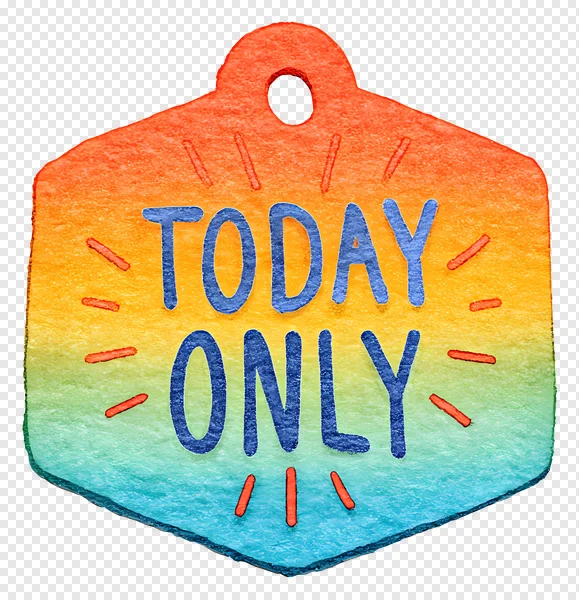 Download this vibrant and eye-catching "Today Only" rainbow gradient textured sale tag PNG for free! Perfect for announcing special promotions, flash sales, limited-time deals, or exclusive offers across all your marketing channels. This high-quality, transparent graphic features a unique textured effect and bold blue lettering, designed to grab attention and create a sense of urgency. Ideal for e-commerce websites, social media posts, email campaigns, and digital advertisements. Enhance your marketing materials and drive conversions with this distinctive promotional label. Get your free download now and make your offers impossible to miss!