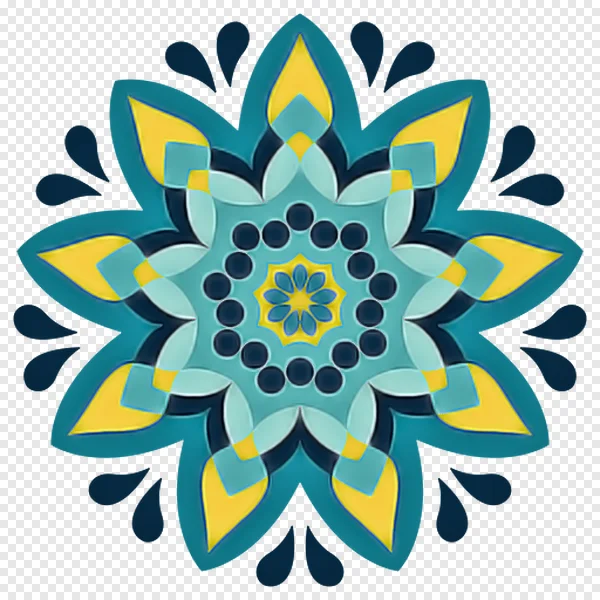 Discover and download this stunning free PNG of a vibrant geometric mandala, showcasing a captivating blend of teal, yellow, and deep blue hues. This intricate floral starburst pattern, with its symmetrical design and ornamental details, is perfect for adding a touch of bohemian elegance or spiritual flair to your creative projects. Ideal for graphic design, digital art, backgrounds, invitations, or textile prints, this high-quality image comes with a transparent background, ready to elevate your visual content. Get this beautiful abstract art piece instantly for personal and commercial use!