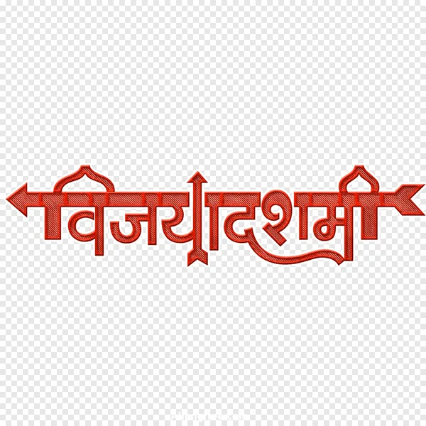 Download this vibrant, high-quality Vijayadashami Hindi text PNG for free! This unique graphic features the word 'विजयदशमी' (Vijayadashami) stylized in striking red, textured calligraphy, cleverly integrated with arrow and traditional bow design elements. Perfect for celebrating Dussehra, this transparent PNG is ideal for creating festive greetings, banners, social media posts, invitations, and other digital or print projects. Symbolizing the triumph of good over evil and Lord Rama's victory, this culturally rich design will add a powerful and artistic touch to your festival graphics. Enhance your designs with this beautiful, ready-to-use Vijaya Dashami graphic today!