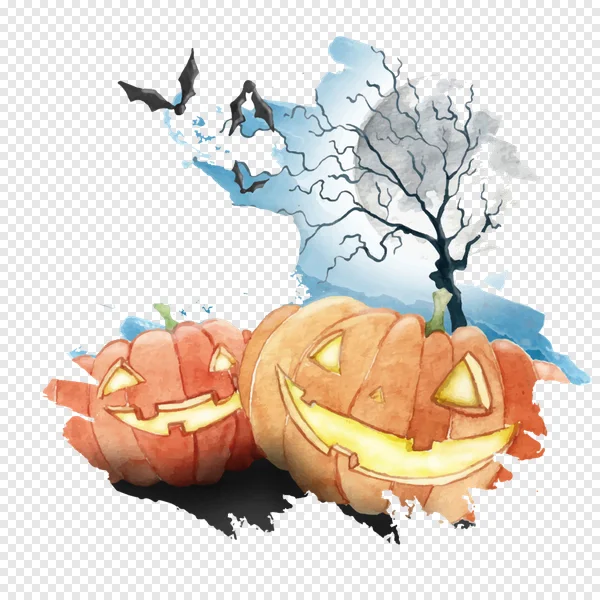 Tags: Halloween autumn bare tree bats clipart decoration digital art fall festive free download full moon glowing grin holiday jack-o'-lanterns night scene pumpkins spooky transparent PNG watercolor