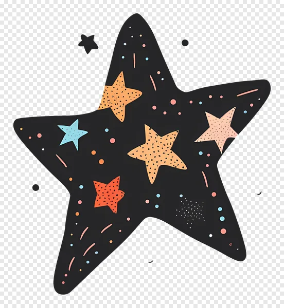 Download this enchanting and vibrant doodle star PNG for free! This high-quality, transparent image features a large, dark gray star playfully decorated with smaller, speckled stars in warm orange, light blue, soft peach, and bright red. Adorned with a scattering of colorful dots and dashes, resembling festive sprinkles, this unique abstract illustration adds a magical, hand-drawn touch to any project. Perfect for digital art, social media posts, invitations, children's designs, holiday crafts, or whimsical branding. Get this fun, eye-catching graphic today and bring a spark of joy to your creations!