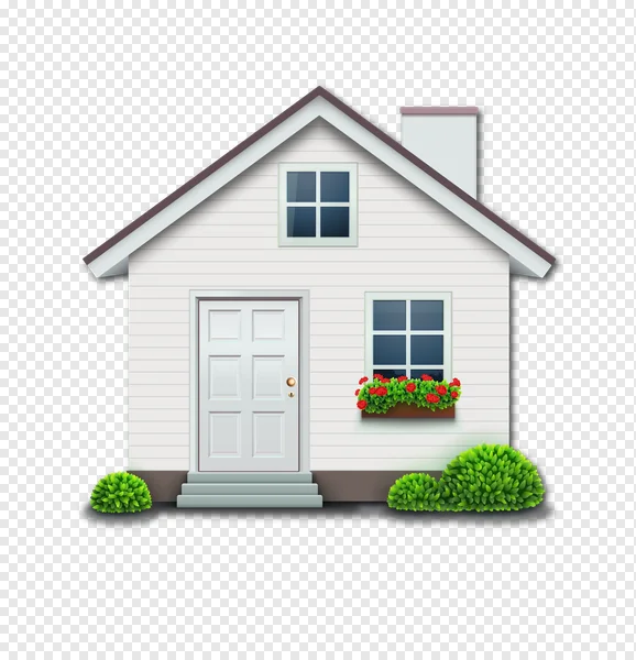 Download this charming free PNG of a white cartoon house, perfect for your next digital project! This high-quality, transparent image features a cozy residential home with a brown roof, chimney, inviting white door, and two windows, one adorned with a vibrant red flower box. Lush green bushes complete the welcoming scene. Ideal for real estate websites, home improvement blogs, presentations, or any graphic design needing a friendly house icon. Enhance your digital creations with this versatile, royalty-free home illustration. Get your instant, transparent PNG download today!