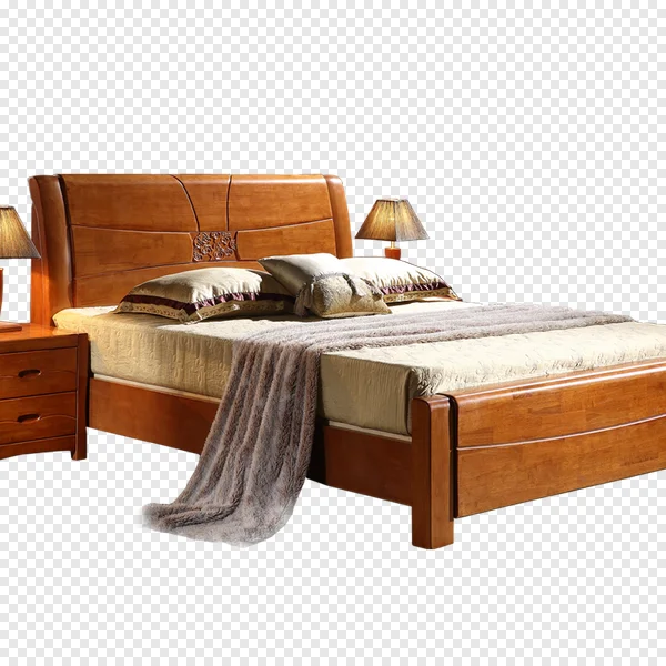 Download this high-resolution PNG image of a beautiful wooden bed, perfect for interior design projects, websites, or presentations. The image features a richly colored wooden frame, intricate carving details on the headboard, and plush bedding. This free PNG download is transparent background, making it easy to incorporate into any design. Download now and elevate your projects with this stunning image of high-quality wooden furniture. This image is ideal for creating brochures, catalogs, and showcasing home furnishings.