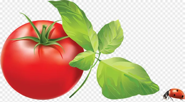 Download this high-quality free PNG image featuring a vibrant, ripe red tomato, beautifully detailed green basil leaves, and a charming little ladybug. This vector illustration, with its clean transparent background, is perfect for adding a touch of natural beauty and culinary freshness to your creative projects. Ideal for recipe blogs, cooking websites, digital art, educational materials, gardening themes, or print designs. Enhance your content with this appealing graphic. Get your free download now and infuse your work with organic charm!