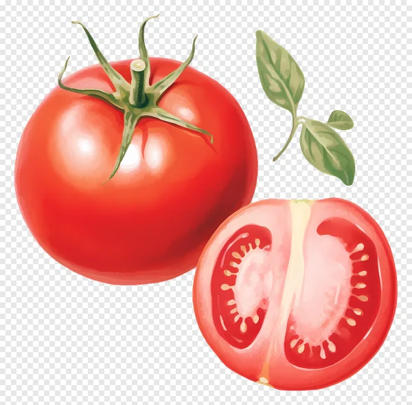 Enhance your designs with this vibrant, free PNG image featuring a juicy red whole tomato and a perfectly sliced half tomato, revealing its intricate seeds. Accompanied by fresh green leaves, possibly basil, this high-quality watercolor-style illustration is perfect for food blogs, recipe websites, digital menus, healthy lifestyle content, and any project needing a touch of fresh culinary appeal. Its transparent background makes it easy to integrate into any layout. Download this versatile, SEO-friendly tomato and herb graphic instantly for your next creative endeavor!