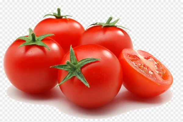 Enhance your culinary designs with this vibrant PNG image featuring a group of fresh, ripe red tomatoes. This high-quality graphic showcases four whole tomatoes with their green stems, alongside one perfectly sliced tomato revealing its juicy interior. Ideal for food blogs, recipe websites, menu designs, grocery promotions, healthy eating campaigns, or any project needing a pop of natural color. The transparent background ensures seamless integration into your creations. Download this crisp, delicious-looking tomato PNG for free and add a touch of garden freshness to your next project today!