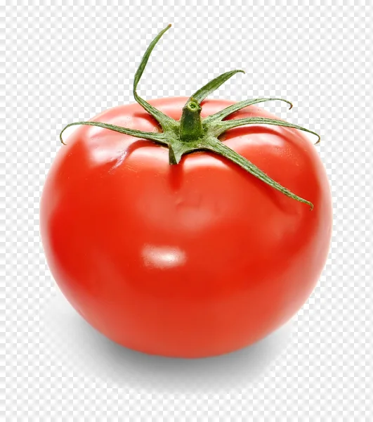 Download this vibrant, high-resolution tomato PNG image with a transparent background for free! Perfect for food blogs, recipe designs, educational materials, presentations, or any project needing a realistic tomato graphic. This image features a ripe, red tomato with green leaves, isolated on a white background. Enhance your visuals with this versatile and easily downloadable tomato PNG.