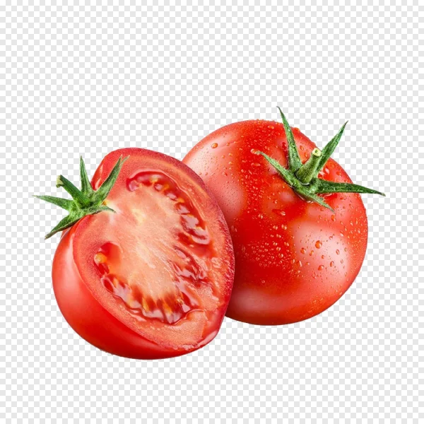 Download this stunning, high-resolution PNG image of fresh, ripe tomatoes! Featuring both a whole tomato and a perfectly sliced half, complete with water droplets and vibrant green stems, this versatile graphic is ideal for food blogs, recipe designs, health & wellness content, and more. Free for personal and commercial use – enhance your projects with this realistic tomato image today! Transparent background for easy integration into your designs.