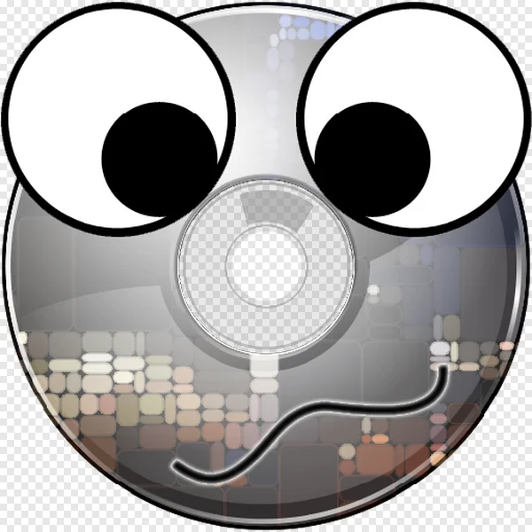 Download this unique and amusing free PNG image featuring a cartoon CD or DVD with a personality! This digital media disc graphic boasts oversized googly eyes, a central eye-like element, and a quirky, wavy mouth, giving it an expressive emoticon feel. Its surface is adorned with a subtle, blocky equalizer-like pattern, adding to its digital charm. Perfect for adding a touch of humor to your music-related projects, tech illustrations, educational materials, or any design needing a fun and nostalgic media icon. Get this high-quality, transparent graphic for your creative needs today – completely free for personal and commercial use!