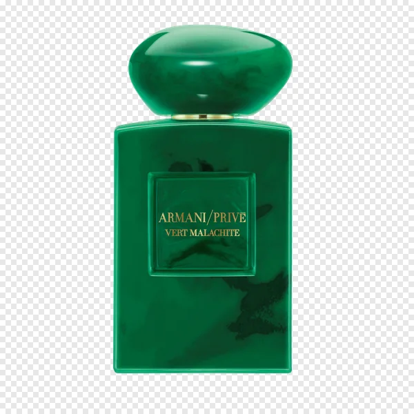 Download a high-quality, transparent PNG image of the luxurious Giorgio Armani Privé Vert Malachite perfume bottle. Perfect for graphic design projects, website backgrounds, social media posts, or creating stunning visuals. This free-to-use image features the iconic emerald green bottle and label, offering a sophisticated touch to your designs. Enhance your projects with this elegant and detailed perfume bottle graphic – download now!