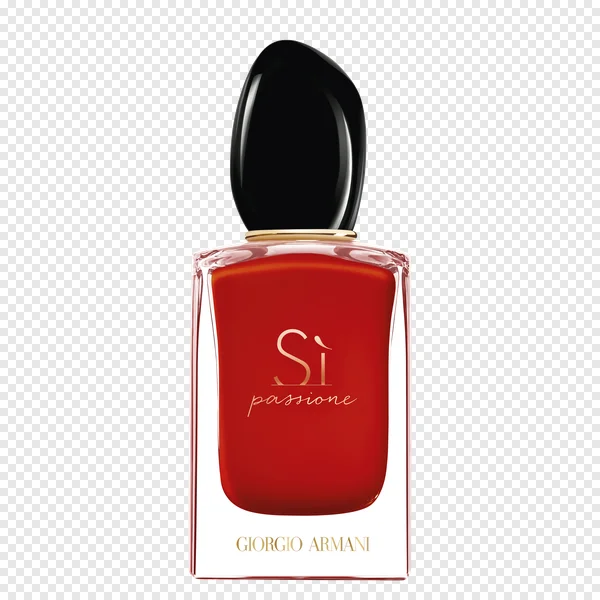 Elevate your creative projects with this stunning, free PNG image of the Giorgio Armani Sì Passione perfume bottle. This high-resolution, transparent asset features the iconic rectangular clear glass bottle filled with vibrant red liquid, an elegant glossy black cap, and luxurious gold 'Sì passione' and 'GIORGIO ARMANI' lettering. Perfect for beauty blogs, fashion editorials, product mockups, e-commerce graphics, social media posts, or any design needing a touch of luxury and sophistication. Download now to add this captivating designer fragrance to your visual library!
