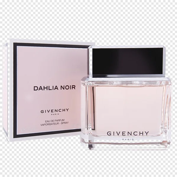 Download this exquisite Givenchy Dahlia Noir Eau De Parfum PNG image for free. This high-quality transparent background image showcases the elegant pink box and the sophisticated clear glass bottle, filled with its delicate rose-tinted fragrance and topped with a sleek black and silver cap. Perfect for beauty blogs, e-commerce product displays, graphic design projects, advertising materials, or digital presentations. Elevate your creative work with this luxurious perfume visual. Get your free Givenchy Dahlia Noir PNG download now!