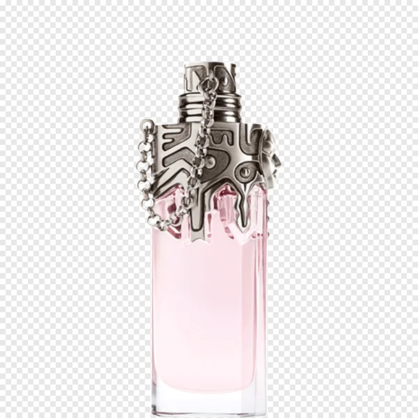 Download this stunning, high-quality PNG of a glamorous pink perfume bottle for free! This elegant glass bottle is filled with a delicate rose-tinted fragrance, topped with an intricately designed silver cap. The unique cap features an ornate tribal pattern, a delicate chain detail, and a distinct abstract human face in profile, adding a touch of luxury and sophistication. Perfect for beauty blogs, cosmetic advertisements, graphic design projects, presentations, or digital art where a transparent background is needed. Enhance your visuals with this stylish and unique fragrance image today!