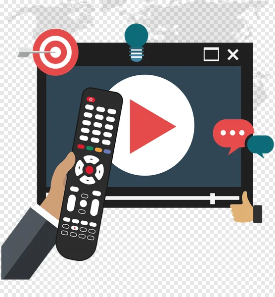 Download this high-quality, free PNG image depicting a hand holding a sleek black remote control, poised to interact with an online video player. The illustration cleverly integrates global reach with a world map background, alongside icons representing content ideas (lightbulb), strategic targets (bullseye with arrow), and audience engagement (chat bubbles, thumbs up). Perfect for websites, presentations, blogs, or marketing materials related to digital media, video streaming, content marketing, global communication, interactive entertainment, and online viewership. Enhance your projects with this vibrant, conceptual graphic that symbolizes control, connection, and success in the digital realm. Get your free download today!