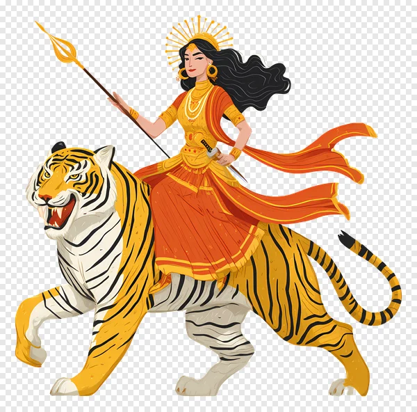 Download this Goddess Durga On Tiger - Goddess Riding a Tiger png PNG image with transparent background which is free of cost. You don't need to remove background anymore. Scroll down to download more similar styles of Goddess PNG images. They are perfectly suitable for designing presentations, stickers, banners or sharing on social media.