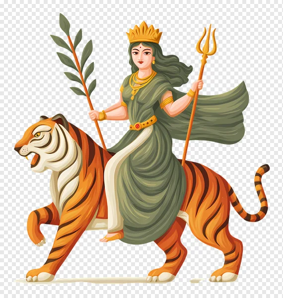 Download this Goddess Durga On Tiger - Mythological Goddess Riding a Tiger png PNG image with transparent background which is free of cost. You don't need to remove background anymore. Scroll down to download more similar styles of Goddess PNG images. They are perfectly suitable for designing presentations, stickers, banners or sharing on social media.