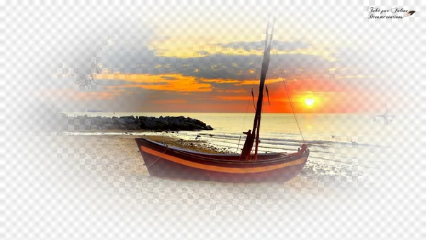 Immerse yourself in the breathtaking beauty of a golden hour sunset with our free PNG image. This stunning scene captures a rustic wooden boat gently resting on a sandy beach, bathed in the warm glow of the setting sun over the ocean. The sky is ablaze with vibrant reds, oranges, and yellows, reflected beautifully on the calm water. Detailed rocks line the shore, a distant ship sails, and a navigational cross adds depth. Perfect for website backgrounds, presentations, digital art, or personal projects. Download this high-quality, tranquil seascape for a touch of serenity and vibrant color. Enhance your designs with this picturesque coastal view today!