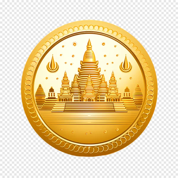 Discover our exquisite Golden Pagoda Temple Emblem PNG, a beautifully rendered, rich gold design featuring intricate Asian spiritual architecture. This luxurious, coin-like graphic showcases a central tiered pagoda surrounded by smaller temple structures, all adorned with shimmering golden details and elegant decorative accents within a classic circular border. Ideal for projects requiring a touch of opulence, cultural symbolism, or ancient majesty. This high-quality, free transparent PNG is perfect for digital art, website design, presentations, print media, or adding a sophisticated, spiritual aesthetic to any creative endeavor. Download now to elevate your designs with this majestic symbol of prosperity and tradition.