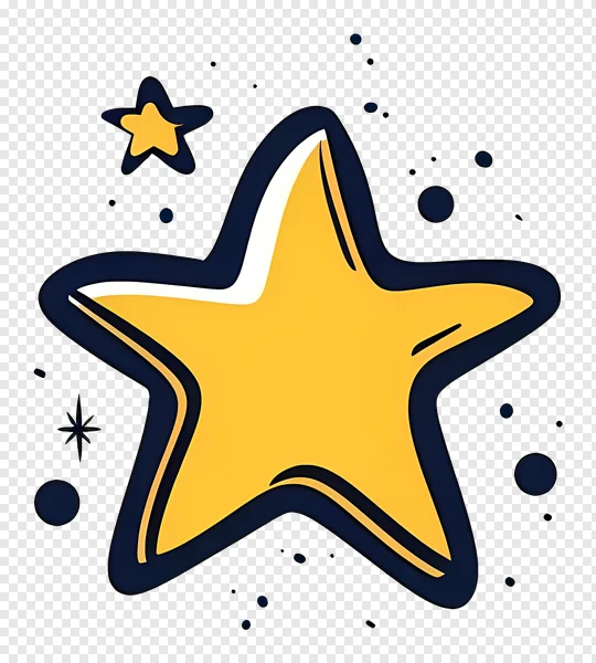 Download this vibrant golden star PNG image for free! Featuring a playful cartoon style with a bold dark blue outline and sparkling accents, this star is perfect for adding a touch of magic to your designs. Use it for kids' projects, party invitations, social media graphics, or any creative endeavor. High-resolution and transparent background for easy integration. Get your free star download now!