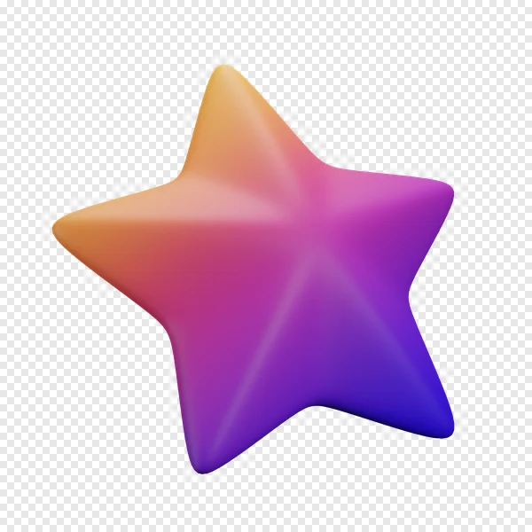Download this stunning gradient star PNG image for free! Featuring a vibrant blend of orange, pink, and purple hues, this 3D starburst is perfect for adding a touch of magic to your designs. Use it for backgrounds, graphics, social media posts, or any project needing a whimsical and eye-catching element. High-resolution and transparent background included. Get your free download now!
