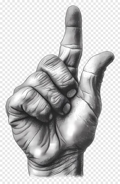 Download this unique grayscale peace sign hand gesture PNG for free! This high-quality image features a textured, artistic rendering of two fingers raised, symbolizing peace, victory, or a friendly 'V' sign. With its transparent black background and monochrome style, it's perfect for graphic design projects, presentations, social media, or any creative endeavor needing a powerful visual. Enhance your digital content with this compelling and free-to-use hand illustration. Get your transparent peace hand PNG now!