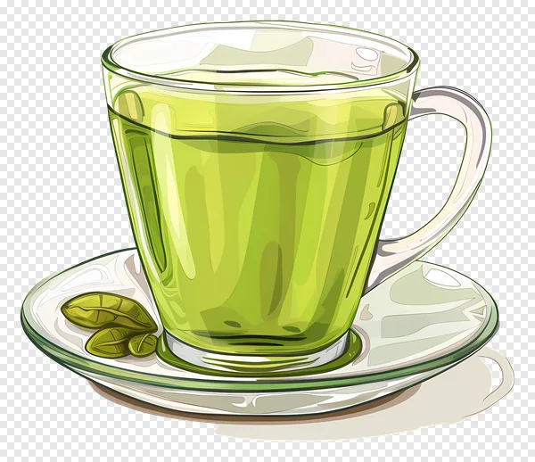 Download this beautiful, high-quality green tea cup PNG image with a transparent background for free! Perfect for adding a refreshing touch to your designs, websites, presentations, or social media. This illustration features a glass cup filled with vibrant green tea and a saucer with tea leaves. Use it for food blogs, health & wellness content, or simply to brighten up your projects. No attribution required!