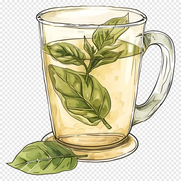 Download this beautiful, high-quality green tea in a glass mug PNG image for free! Perfect for websites, blogs, presentations, or any creative project. This illustration features fresh green tea leaves inside a clear glass mug with a saucer, offering a calming and refreshing aesthetic. Use it to represent health, wellness, beverages, or simply add a touch of serenity to your designs. Get your free PNG download now!